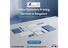 Kapricorn Prints offers top-quality office stationery printing services in Bangalore, providing businesses with customized notebooks, letterheads, envelopes, and more. We make sure every product is printed with quality, vibrant colors, and professional finishes to leave a lasting impression. Our team uses advanced printing technology to meet all your corporate needs efficiently. We handle bulk orders, quick turnarounds, and personalized designs to suit your brand image. Our services are ideal for offices, startups, and enterprises looking to enhance their professional presence. We focus on delivering reliable and cost-effective print solutions. Reach out to Kapricorn Prints today to get your office stationery printed with excellence.