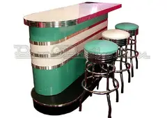 Don’t ever limit your imagination in choosing the finest home bars? Choose your custom Home bars furniture for sale from the nearly endless selections presented by the leaders of retro-styled upholstery of Bars and Booths.com, Inc. Clients can select from two basic home bar options of linear-styled Bomber Bar, and curved-shaped Roberta’s Bar. However, they can also put across their specific personalized home bar themes, in which case our retro furniture trained specialists can instantly get back with optimally functional results.