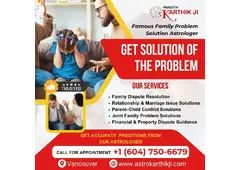 Pandith Karthik Ji is known and respected as the Famous Family Problem Solution Astrologer in Vancouver, offering powerful remedies for restoring harmony and peace within families. Whether you are dealing with constant arguments, misunderstandings, relationship stress, or emotional imbalances at home, our deep knowledge of Vedic astrology provides accurate guidance and effective solutions. We help families rebuild trust, strengthen bonds, and create a positive and peaceful environment through the use of personalized spiritual techniques. Our experience and compassion make us a trusted choice for family issues. For immediate assistance with family problems, contact us.