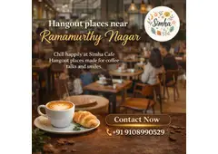 Simha Cafe is our cozy hangout place near Ramamurthy Nagar where we welcome guests with warmth and flavor. We serve aromatic coffee, tasty snacks and refreshing beverages daily. Our ******ce creates comfort, relaxation, and joyous conversations. We design spaces for friends, families, and casual meetings. Our menu satisfies your cravings with delicious varieties. We maintain quality, hygiene, and friendly service always. Our vibe brings smiles and memorable moments. We make every visit special with great tastes and excellent service. Our passion is creating the perfect hangout where we share joy, laughter, and delightful moments together to cherish our love forever. Choose Simha Cafe today for relaxing hangouts, flavorful coffee and delightful moments.
