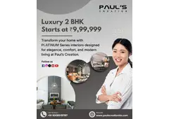 Paul's Creation is recognized among luxury interior designers in Bangalore, delivering elegant and functional interiors customized for modern lifestyles. We specialize in transforming apartments, villas, and luxury homes with innovative designs and premium finishes. Our services include modular kitchens, wardrobes, living rooms, and bedrooms that maximize the use of space. We proudly present luxury 2BHK interiors, crafted for comfort, style, and luxury. Our commitment is to provide quality materials, timely project completion, and cost-effective solutions while focusing on refined design and personalized service. Contact Paul's Creation today for a free consultation.