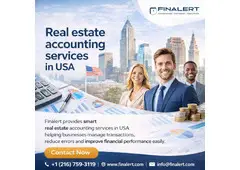 Finalert provides is the best real estate accounting services in USA with complete, reliable, and business-oriented accounting solutions. We support property owners, investors, developers and agencies with bookkeeping, reporting, tax preparation, expense tracking, and cash flow management. Our team understands the unique financial needs of real estate businesses and creates customized services for better control and smarter decisions. We simplify complex records and maintain clear financial visibility for every transaction. Our approach saves time, reduces errors and improves efficiency across operations. We focus on compliance, transparency and long-term success. Reach out to Finalert today for expert guidance that helps your business grow faster.